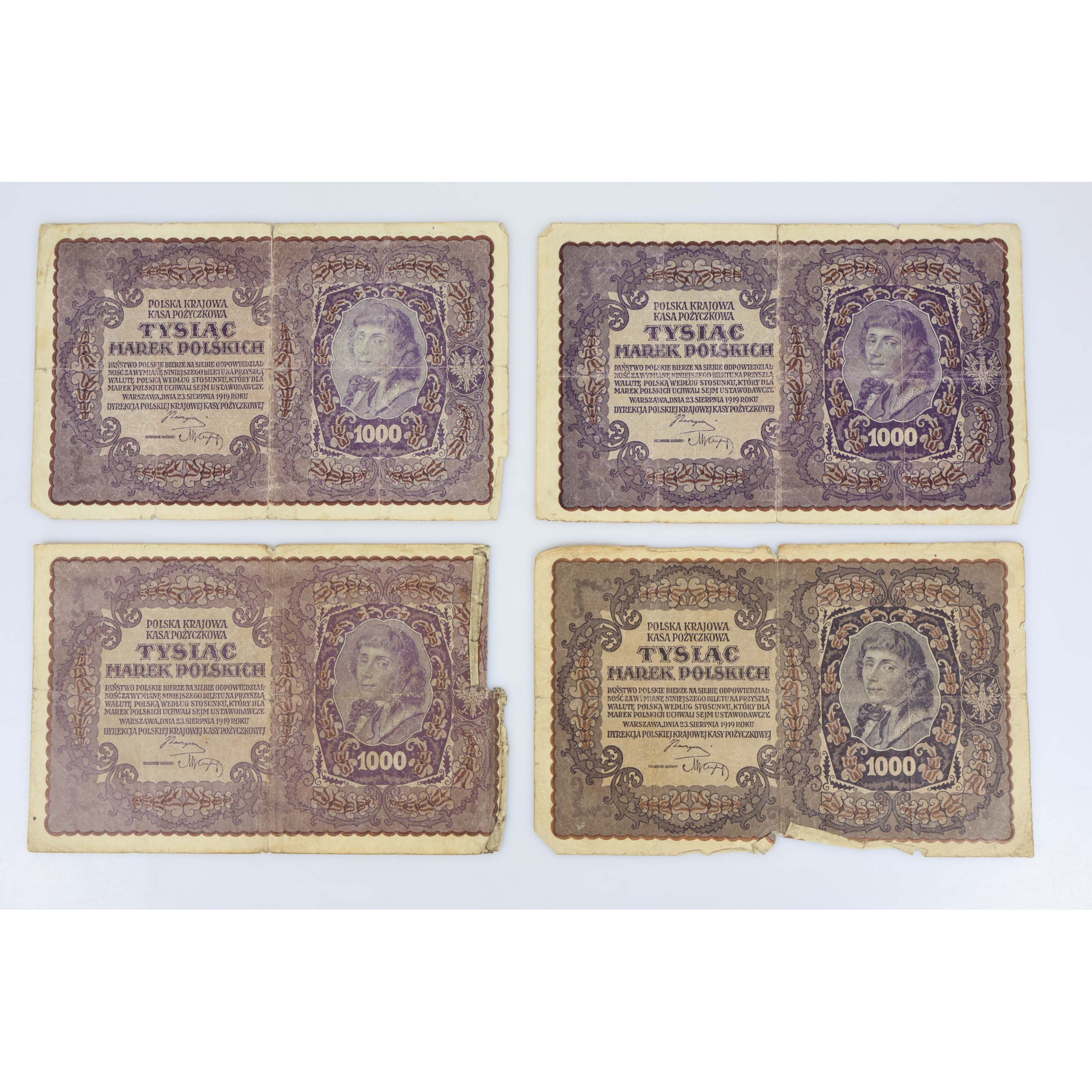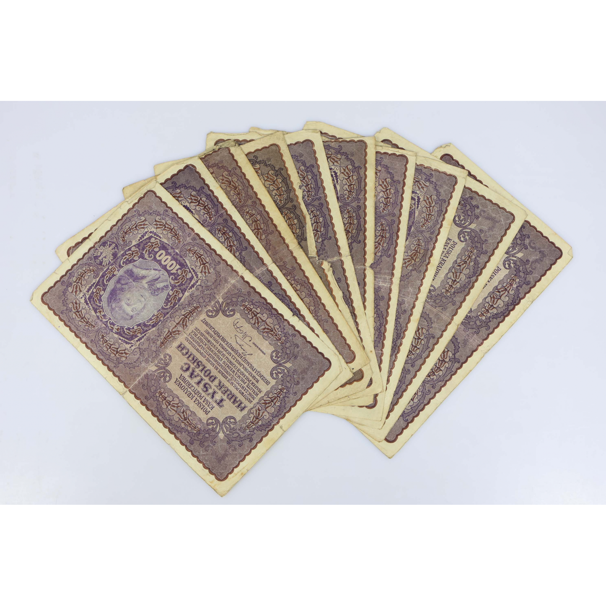 10 anciens billets de banque de 1000 Marek de Pologne datant de 1919