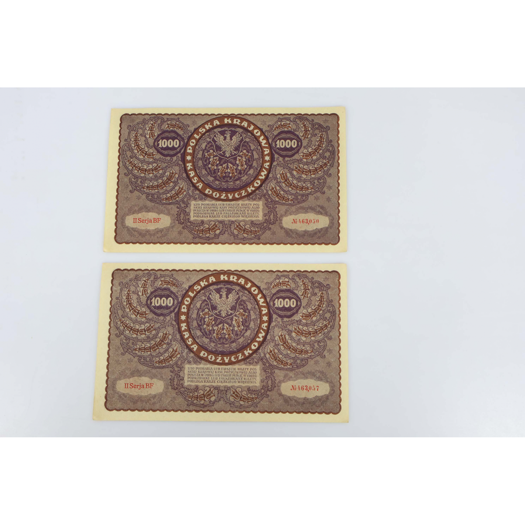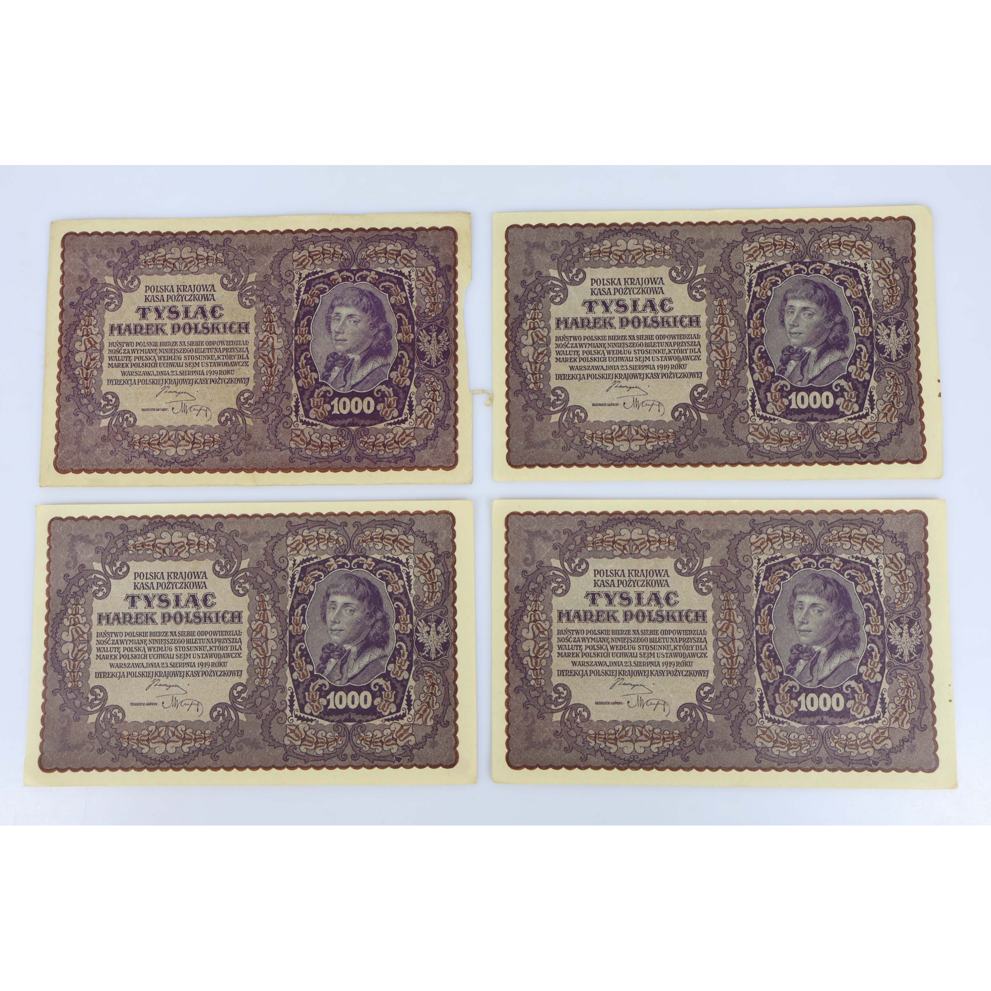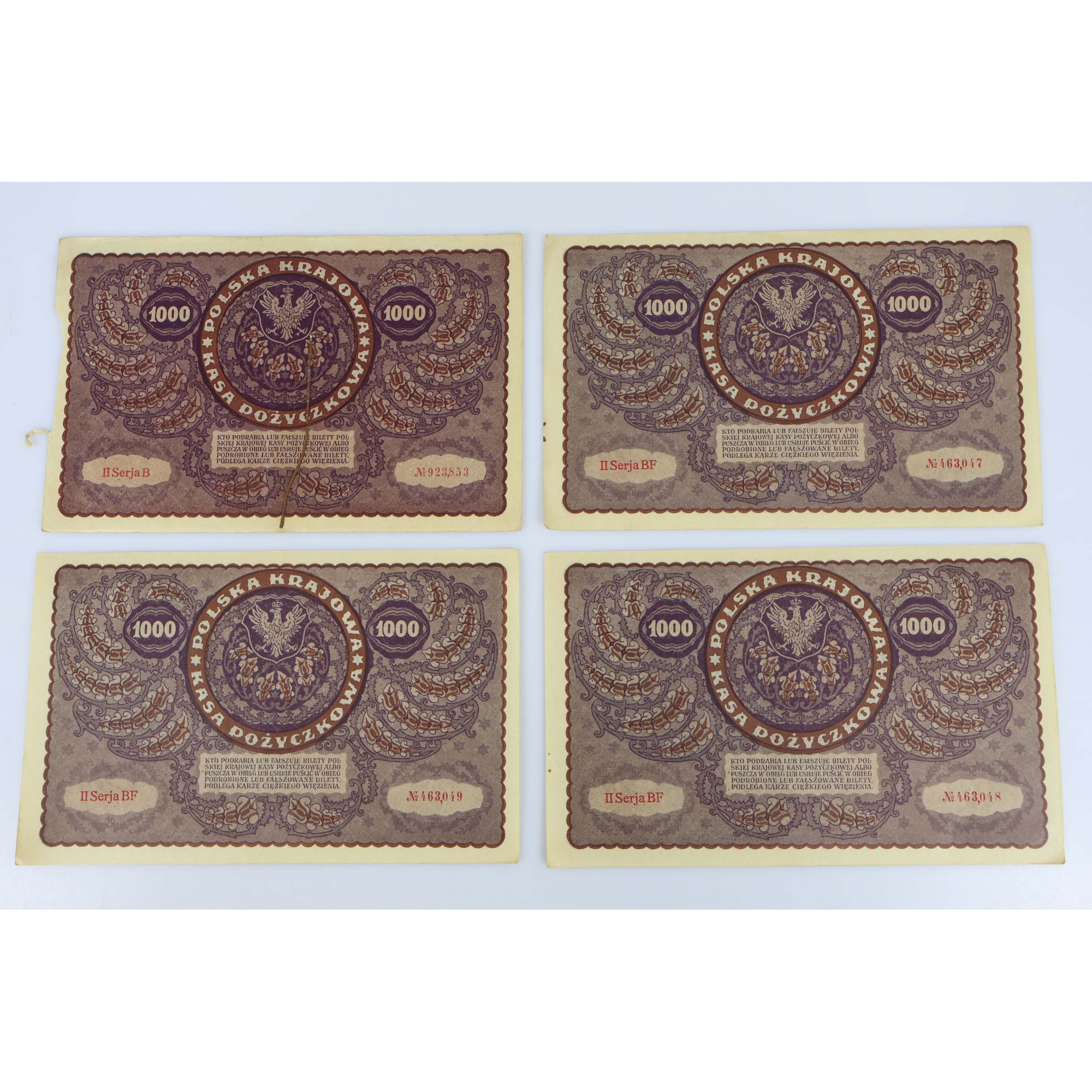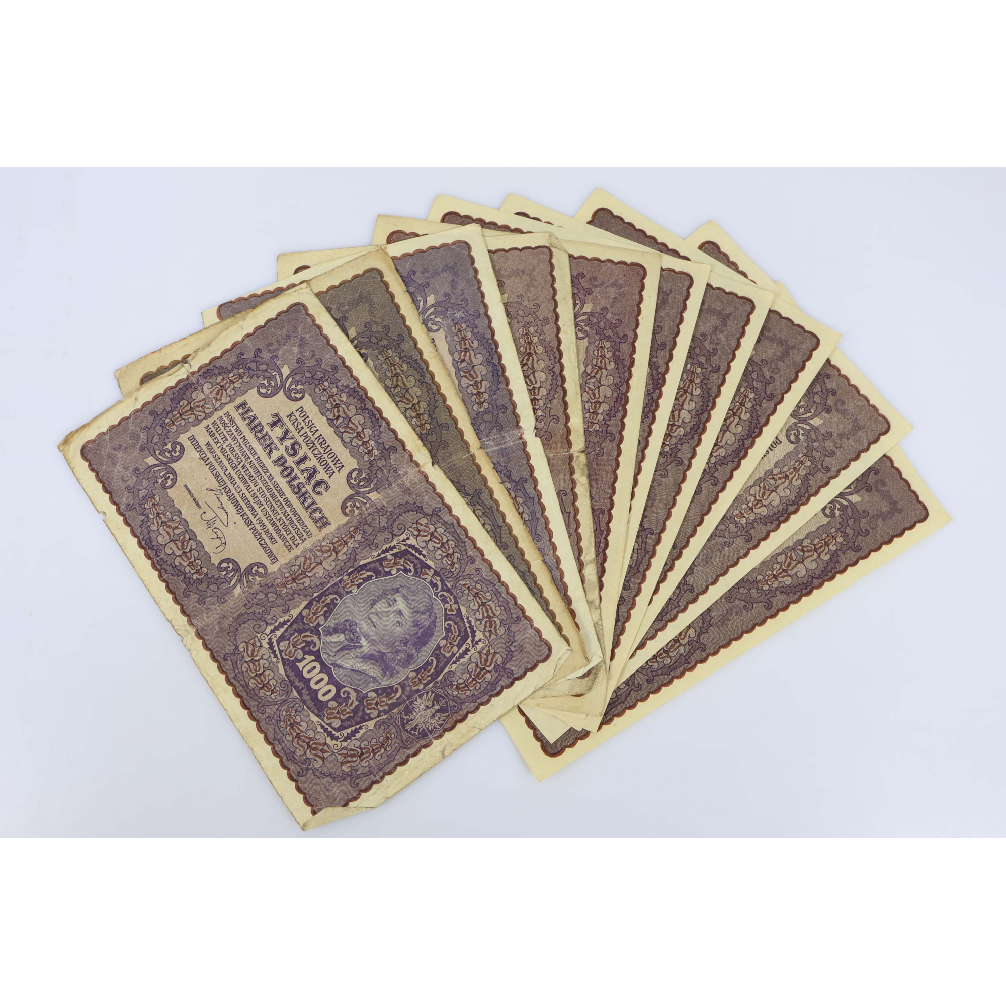 10 anciens billets de banque de 1000 Marek de Pologne datant de 1919
